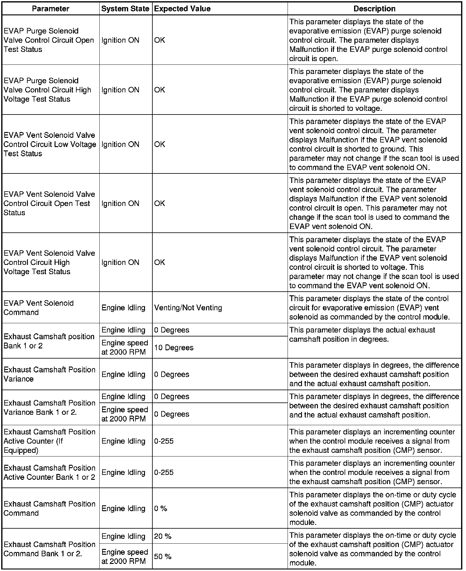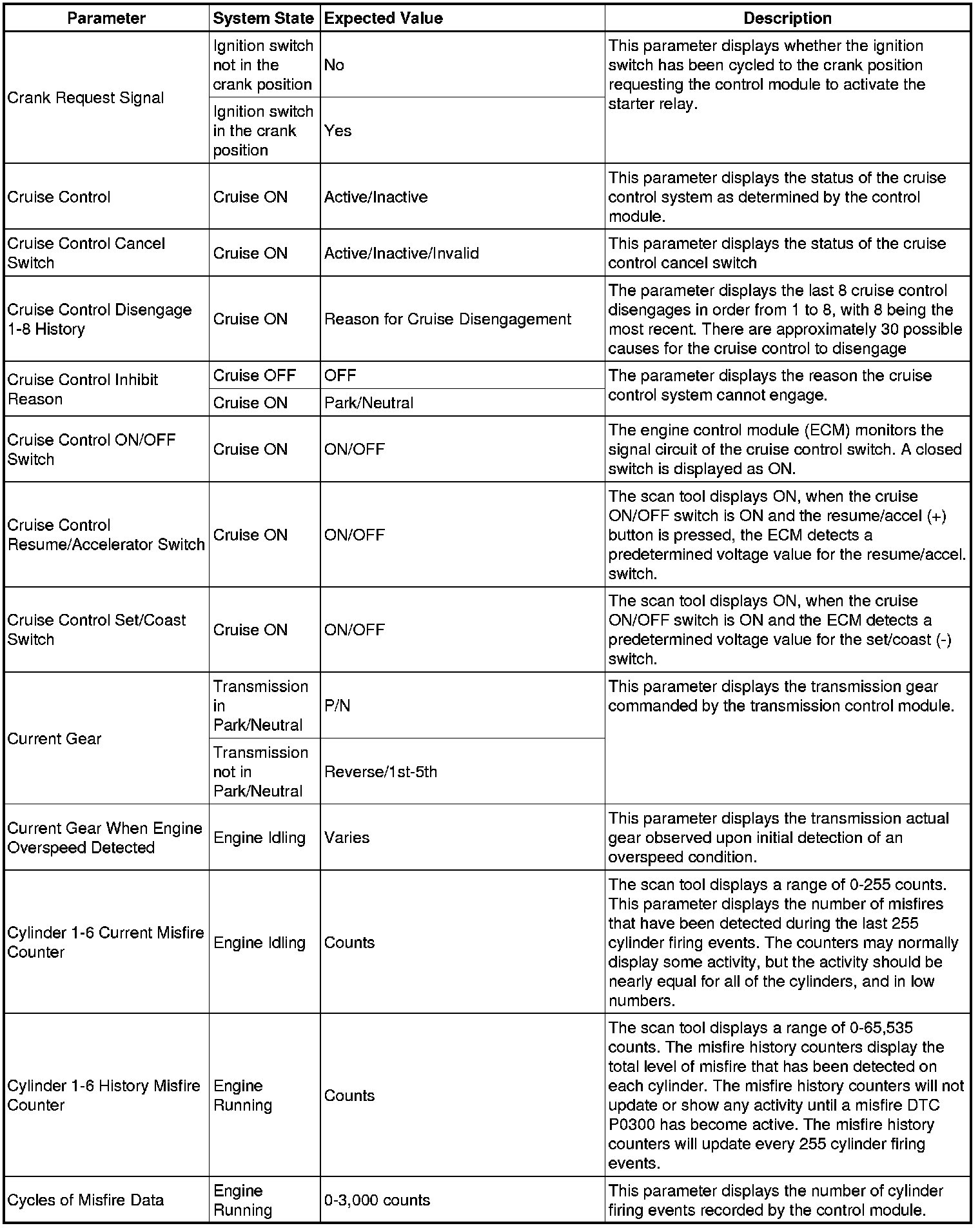 The Engine Control Module Scan Tool Data List contains all engine-related parameters that are available on the scan tool. The list is arranged in alphabetical order. A given parameter may appear in any one of the data lists, and in some cases may appear more than once, or in more than one data list in order to group certain related parameters together.
