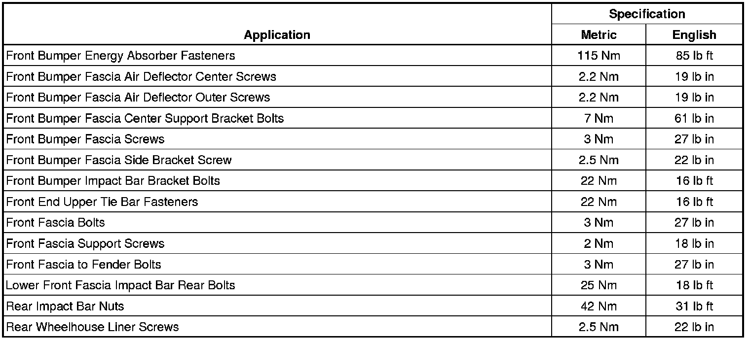 Bumper: Specifications