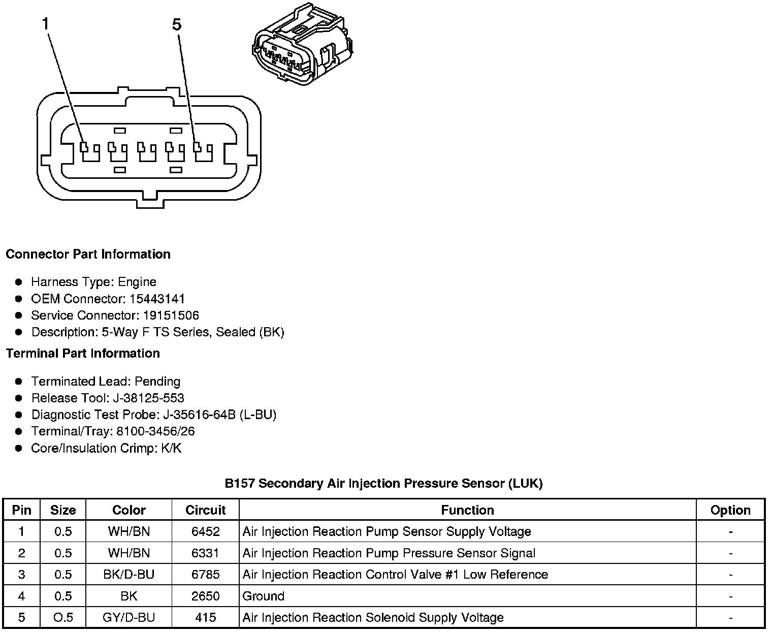 B157 Secondary Air Injection Pressure Sensor (LUK)