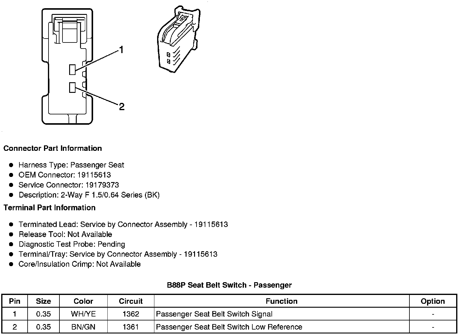 B88P Seat Belt Switch - Passenger