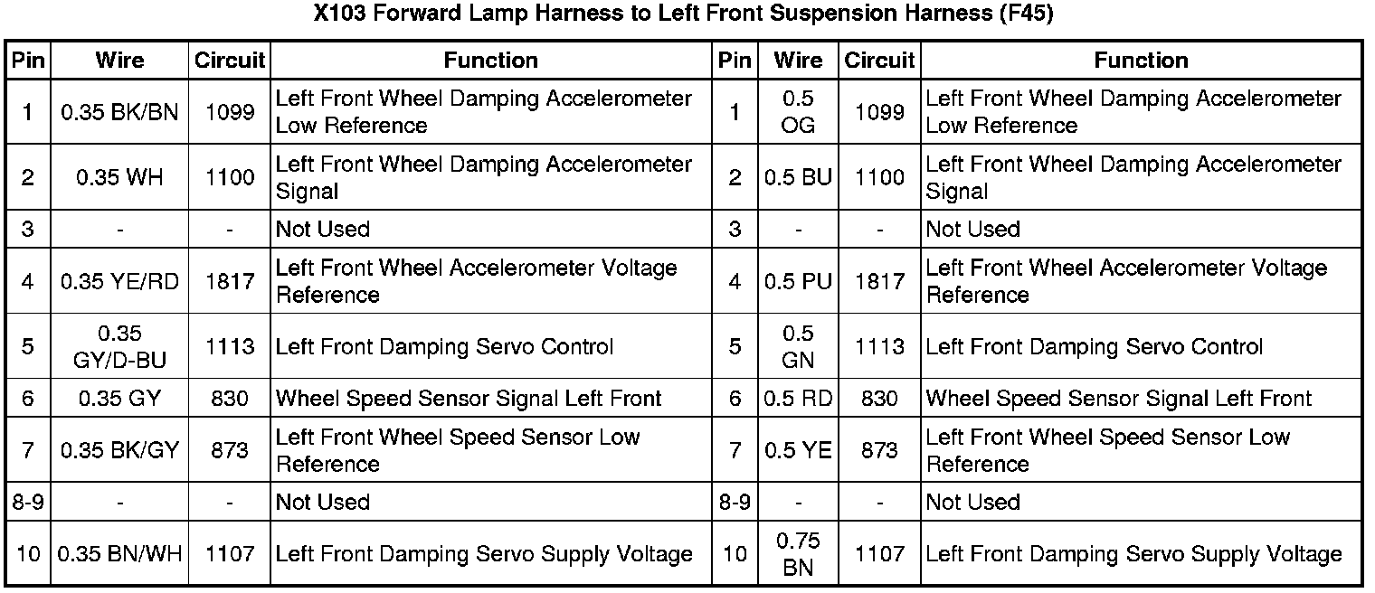 X103 Forward Lamp Harness to Left Front Suspension Harness (F45)