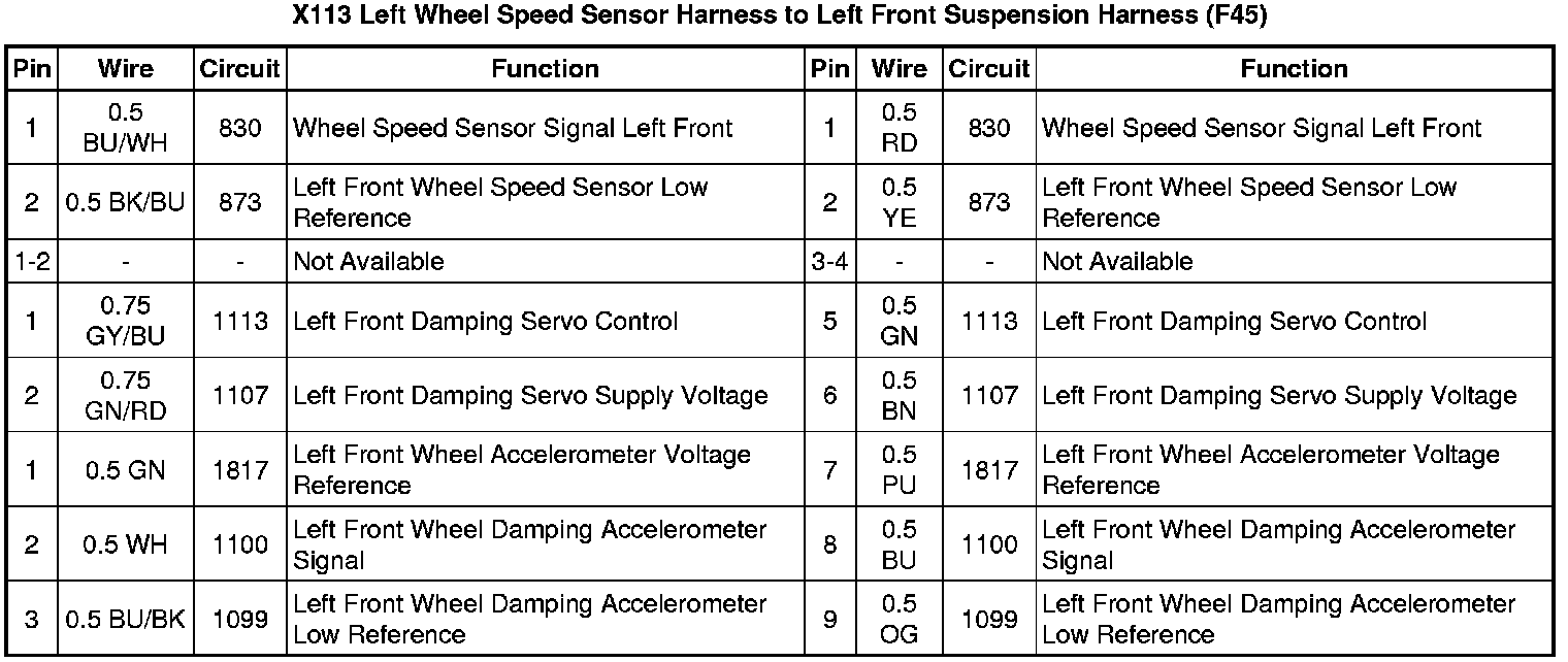 X113 Left Wheel Speed Sensor Harness to Left Front Suspension Harness (F45)