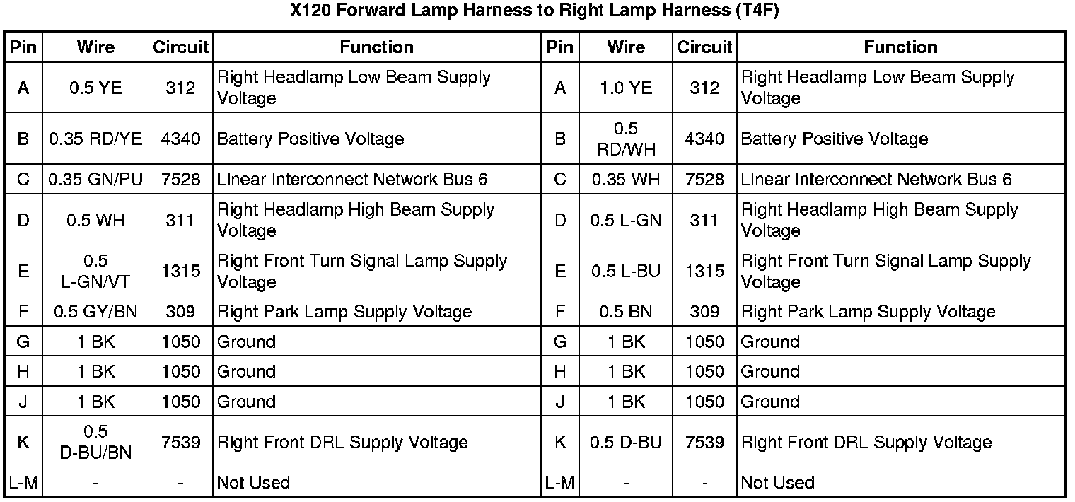 X120 Forward Lamp Harness to Right Lamp Harness (T4F)