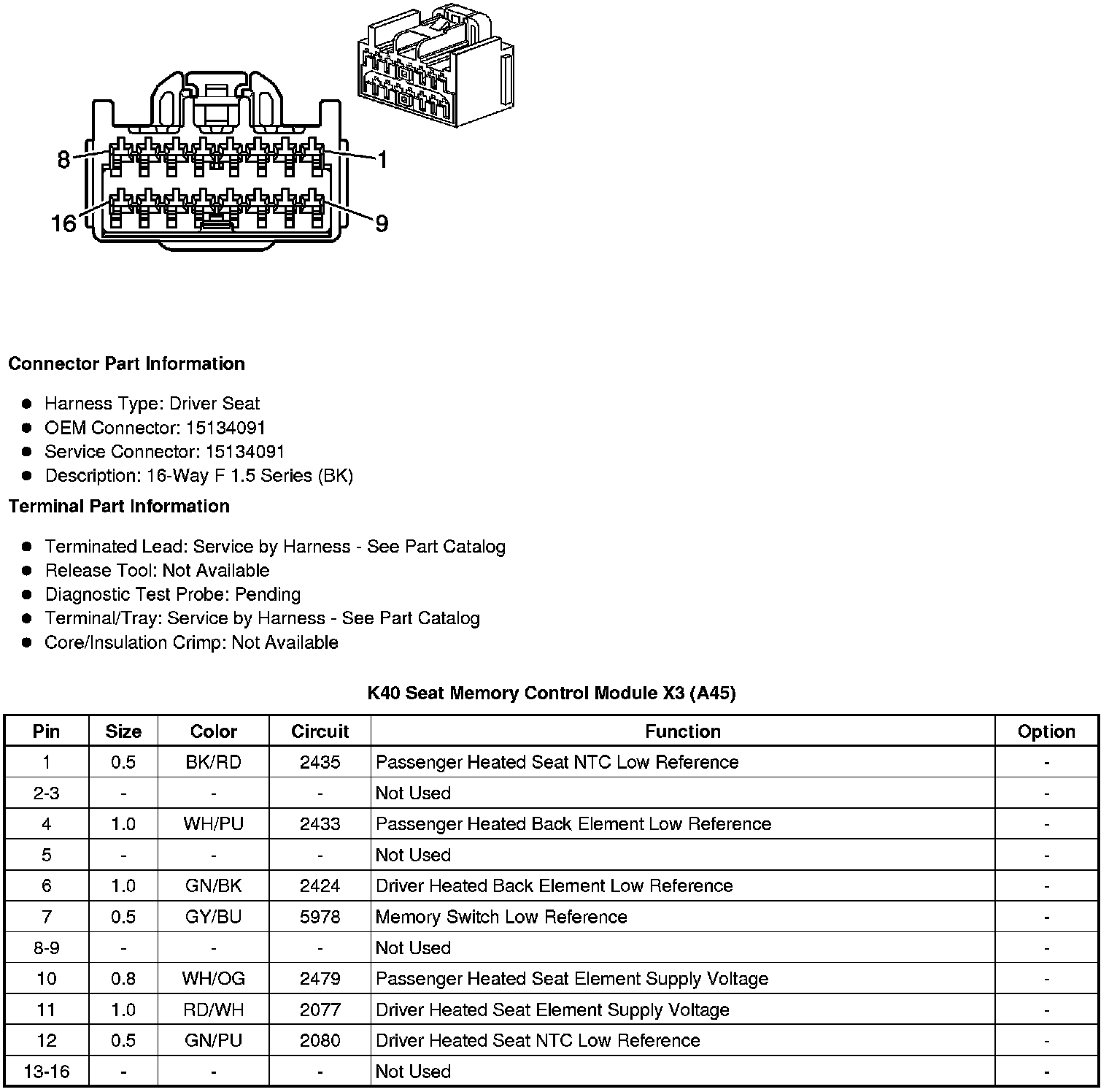 Seat Memory Control Module X3 (A45)