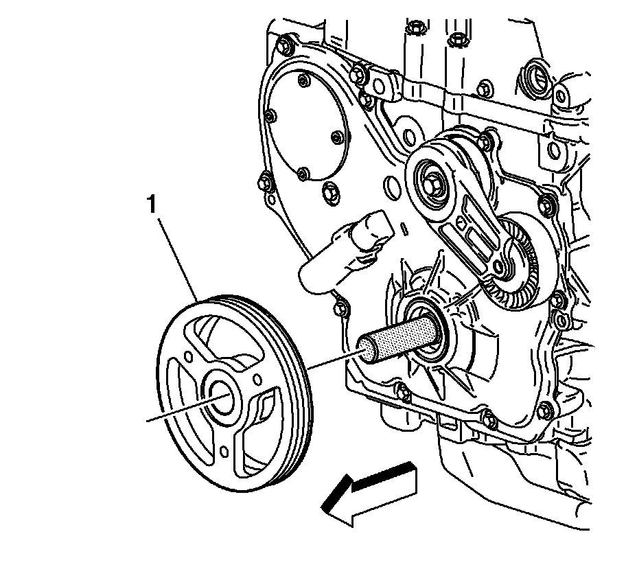 2. Install the balancer (1) onto the EN-48585 - guide. Use care to properly align the keyway and flats on the balancer with the oil pump drive.