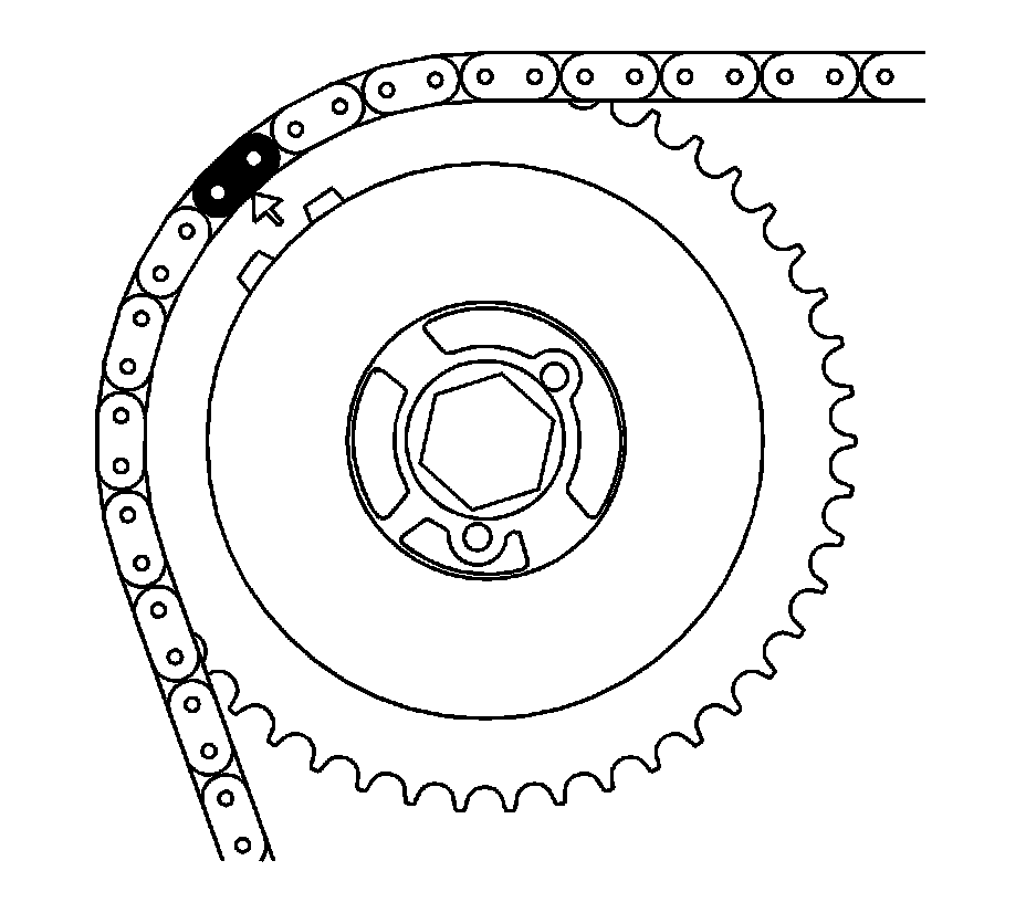 * There are 3 colored links on the timing chain. Two links are of matching color, and 1 link is of a unique color. Use the following procedure to line up the links with the actuators. Orient the chain so that the colored links are visible.