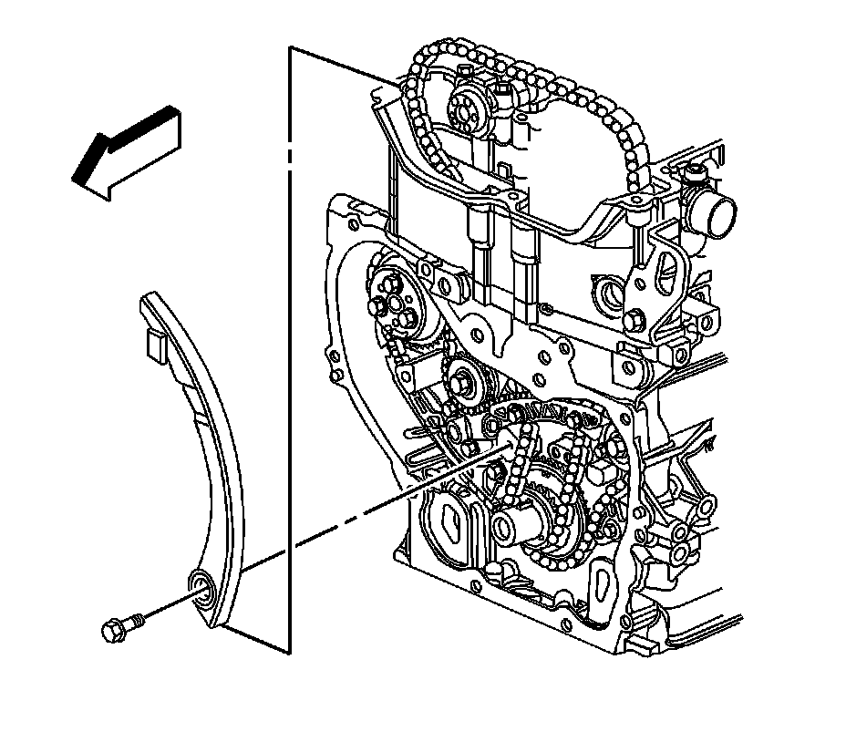 18. Install the fixed timing chain guide and bolts. Tighten the fixed timing chain guide bolts to 10 Nm (89 lb in).