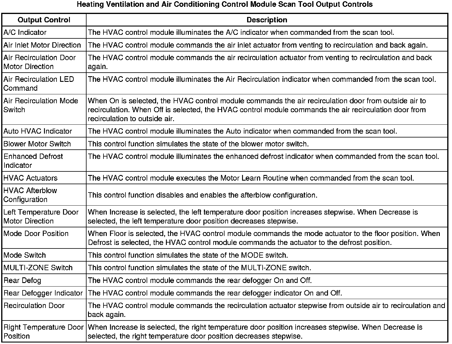 Heating, Ventilation and Air Conditioning Control Module Scan Tool Information