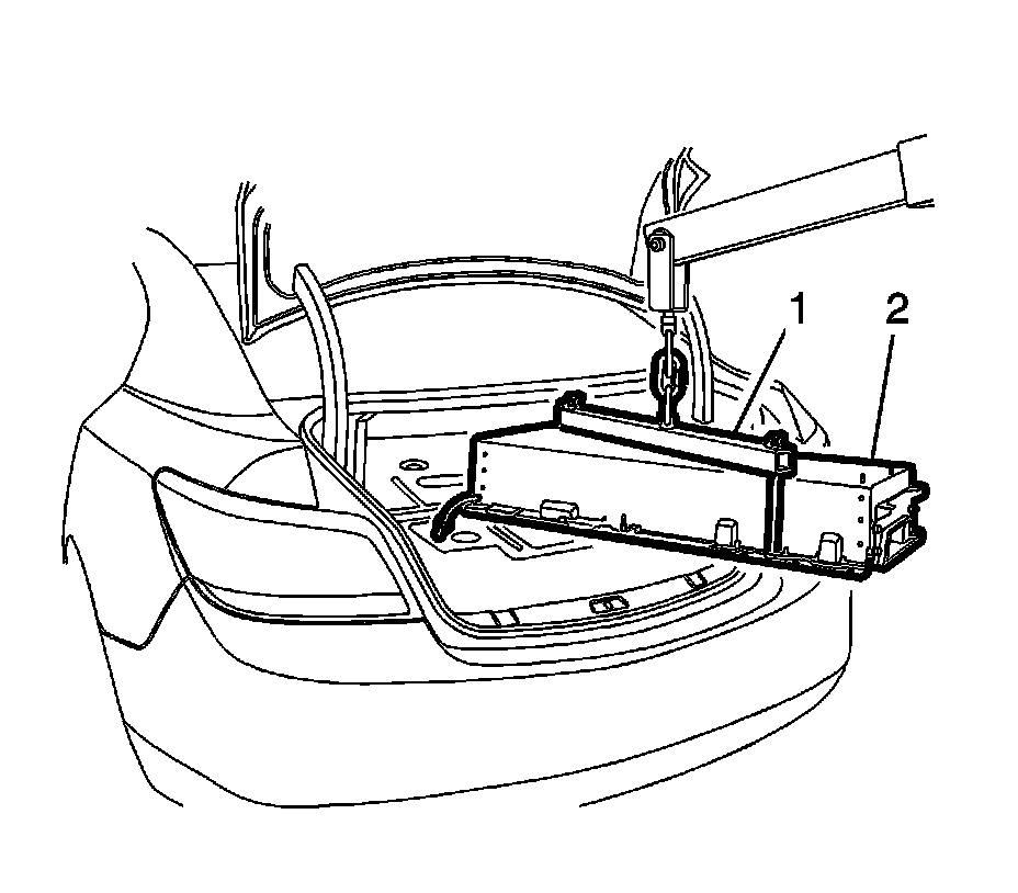1. Install the generator control and battery module (2) in through the trunk opening.