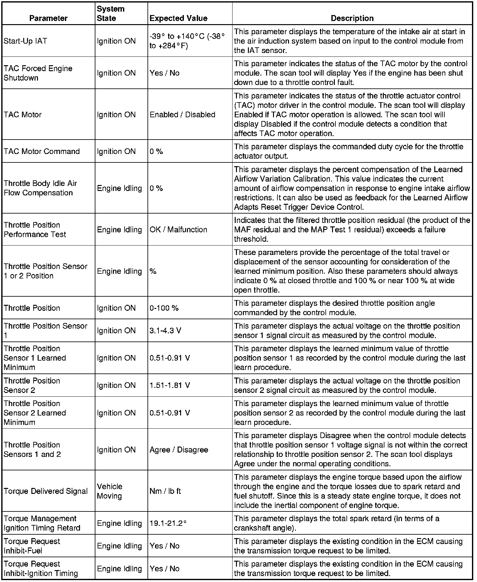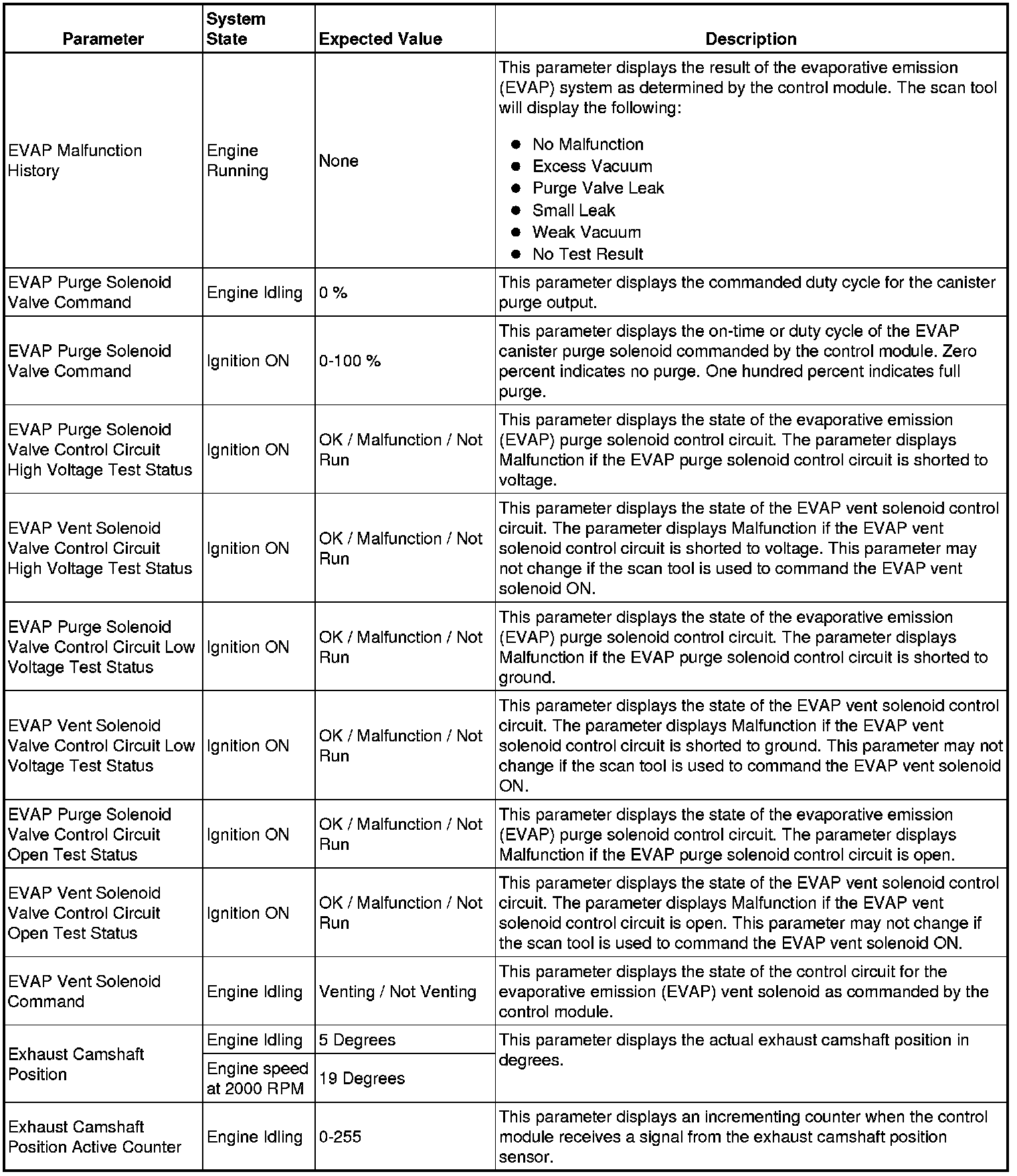 The Engine Control Module Scan Tool Data List contains all engine-related parameters that are available on the scan tool. The list is arranged in alphabetical order. A given parameter may appear in any one of the data lists, and in some cases may appear more than once, or in more than one data list in order to group certain related parameters together.