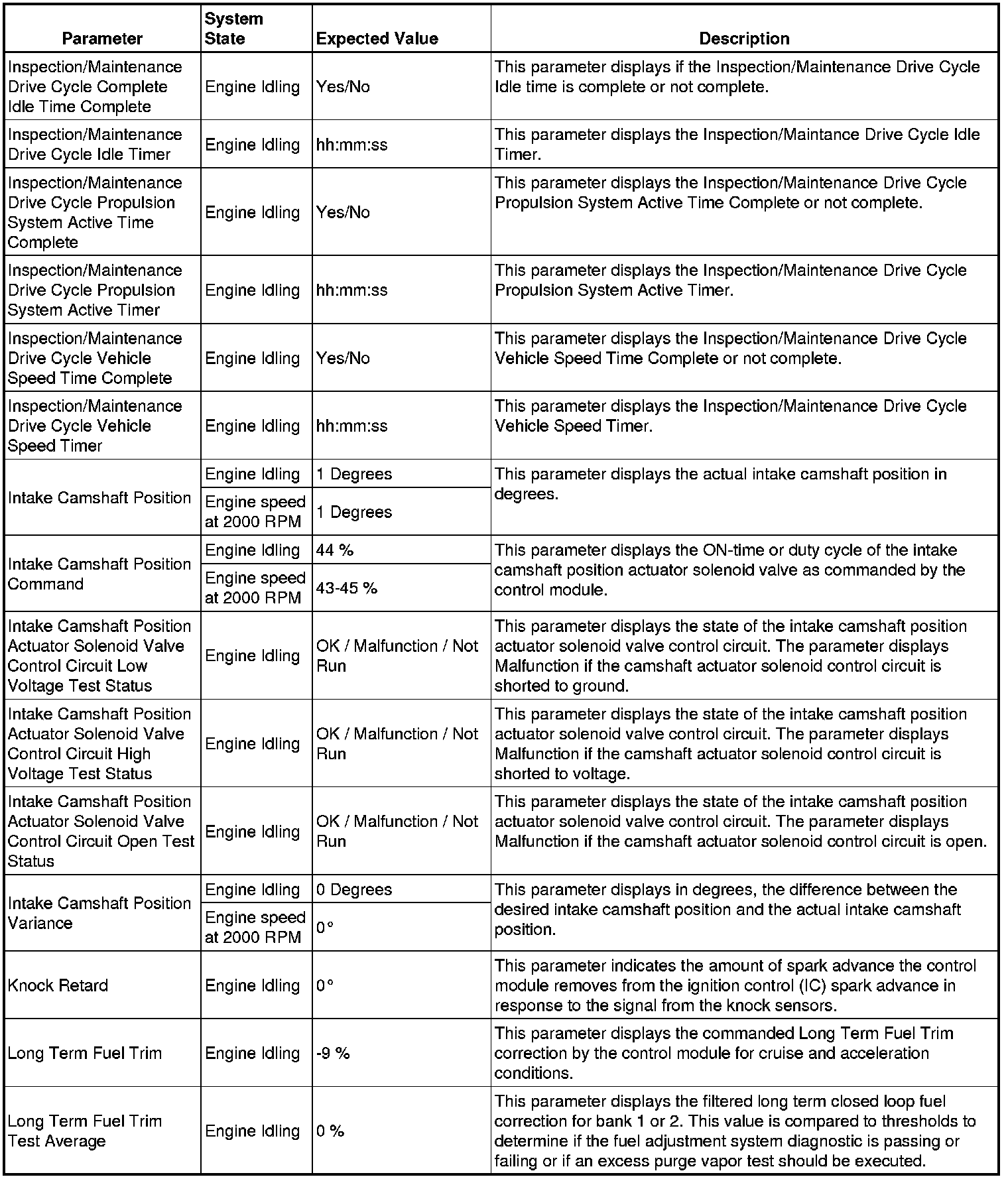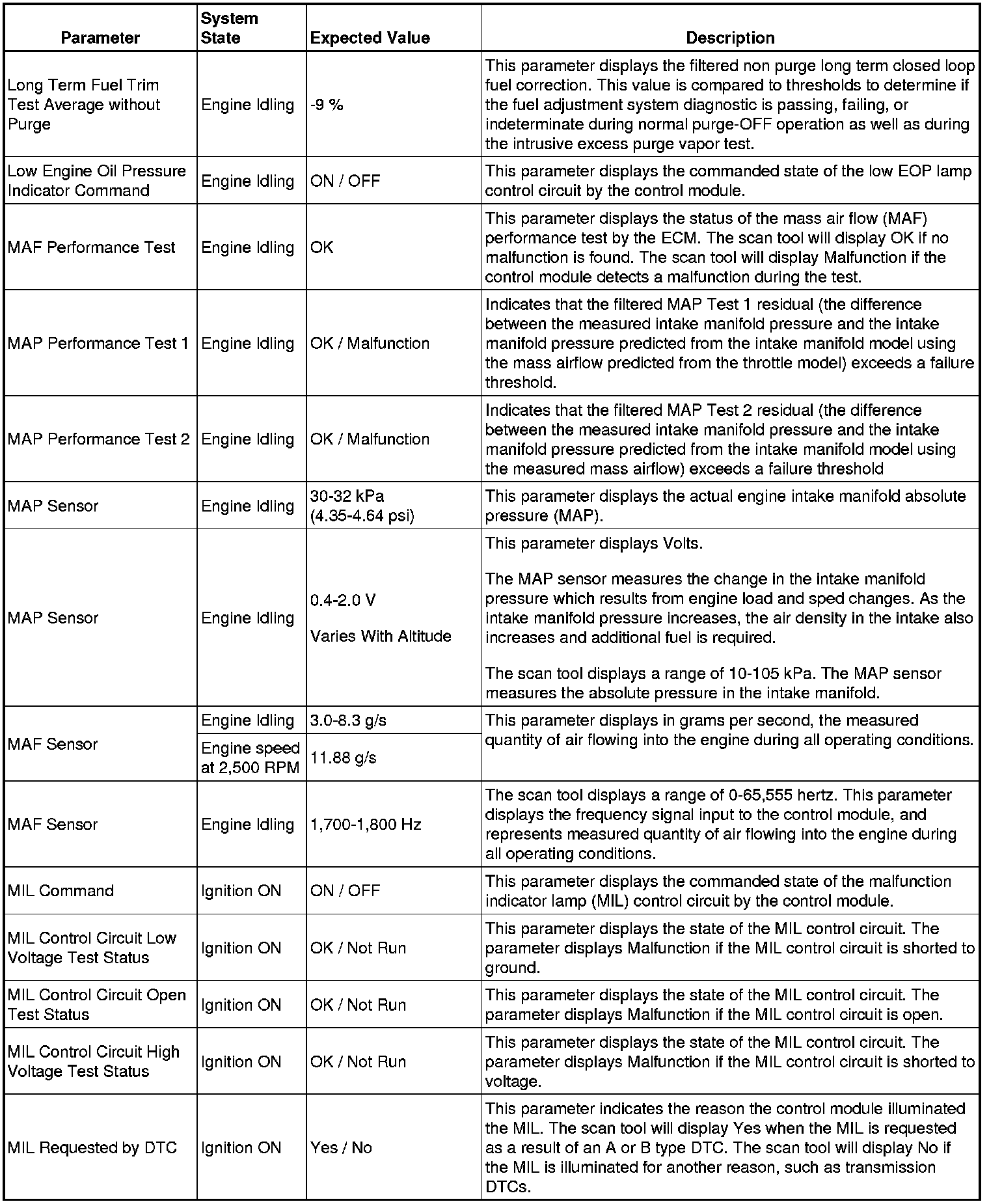 The scan tool values from a properly running engine may be used for comparison with the engine you are diagnosing. The Engine Scan Tool Data List represents values that would be seen on a normally running engine.