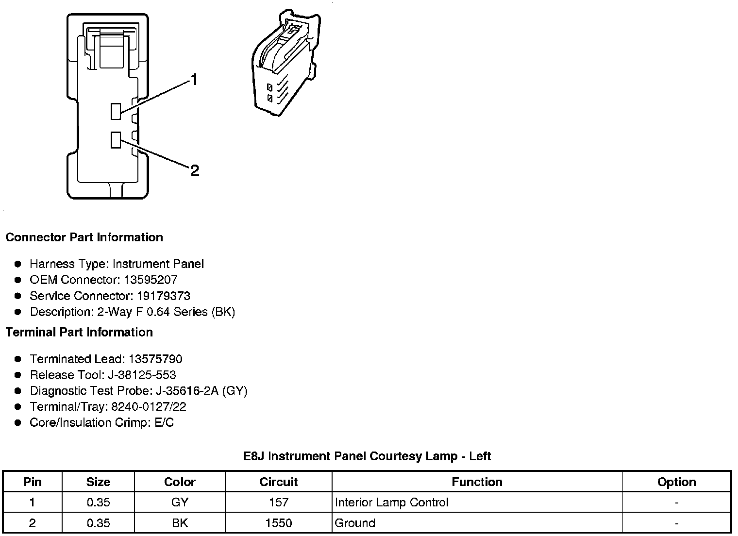 E8J Instrument Panel Courtesy Lamp - Left
