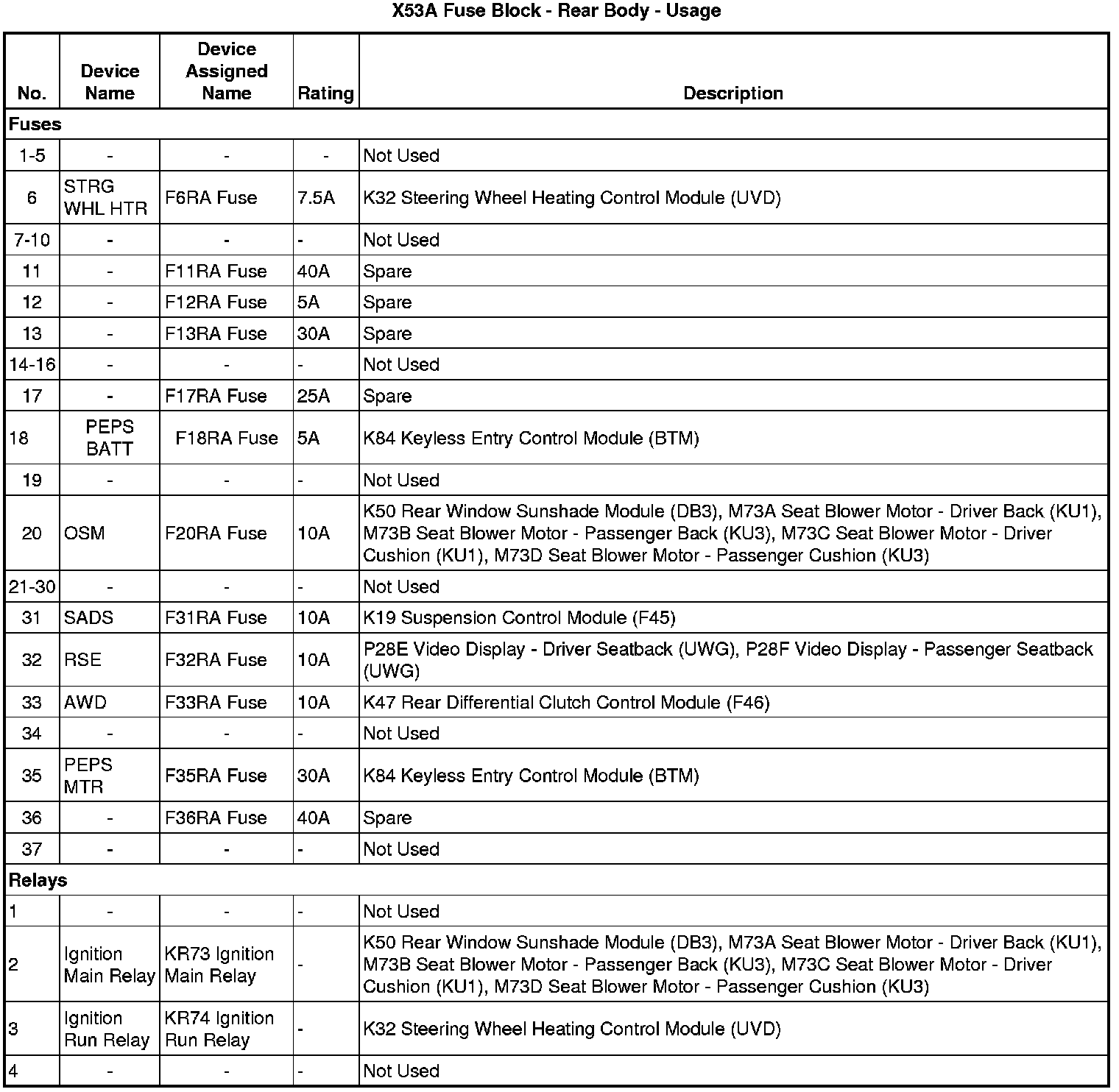 X53A Fuse Block - Rear Body - Top View