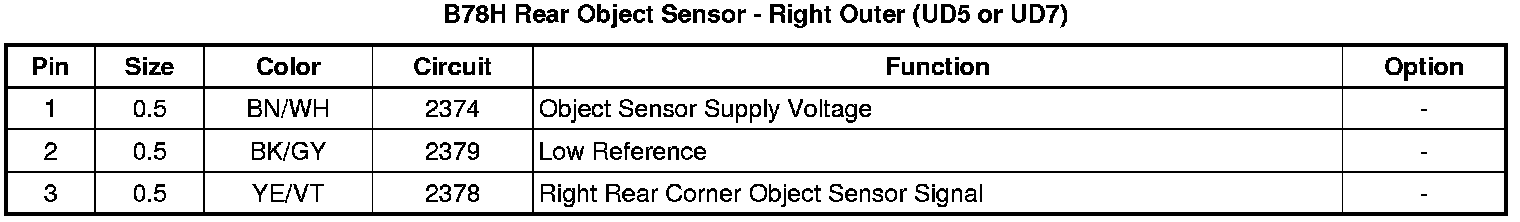 B78H Rear Object Sensor - Right Outer (UD5 or UD7)