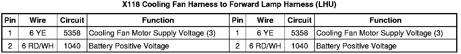 X118 Cooling Fan Harness to Forward Lamp Harness (LHU)