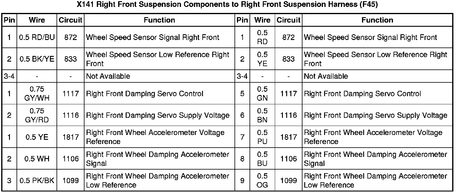 X141 Right Front Suspension Components to Right Front Suspension Harness (F45)