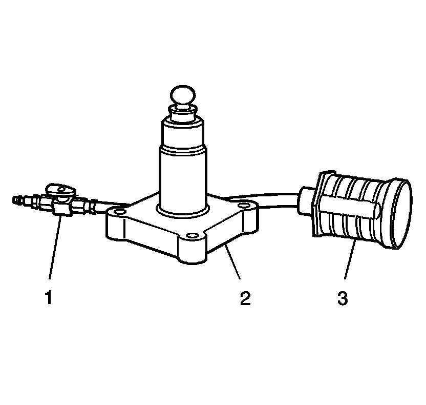 14. Connect a compressed air supply 517.10-861.84 kPa (75-125 psi) to the male quick connect (3) located on EN-45680-861 - trim tool assembly. Turn the compressed air valve (2) to the open position. This starts the venturi vacuum system that will catch the metal shavings.