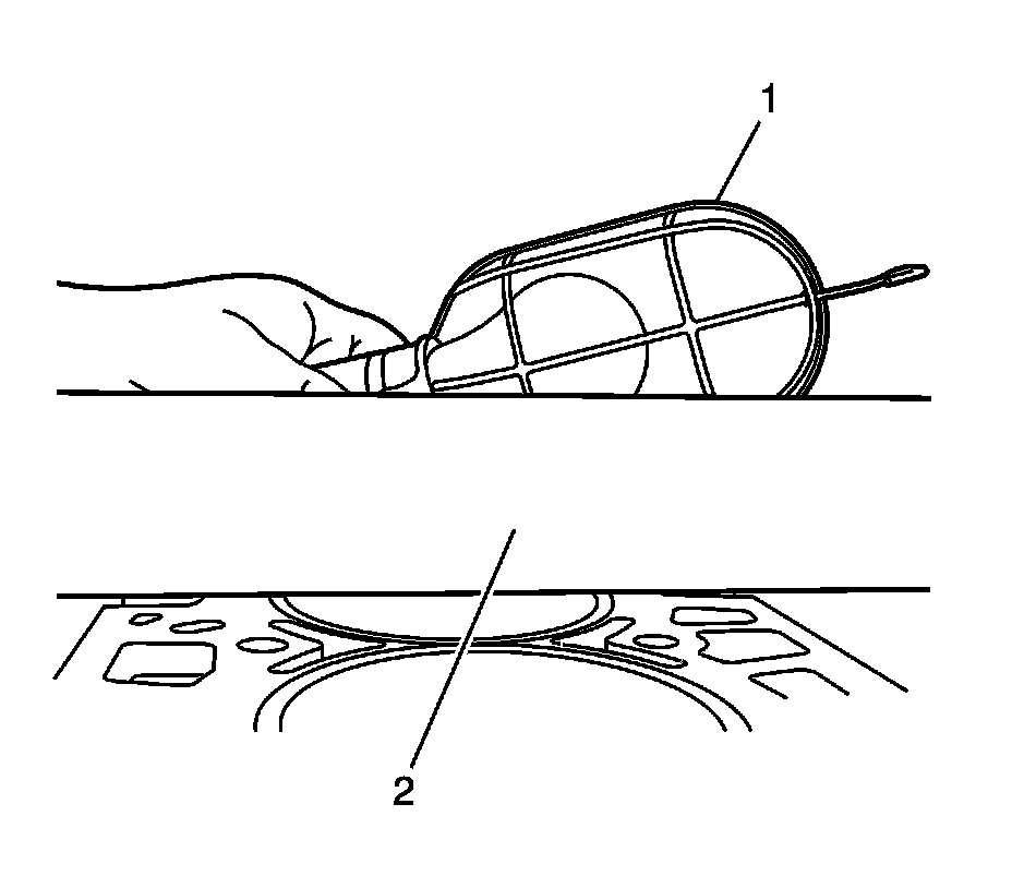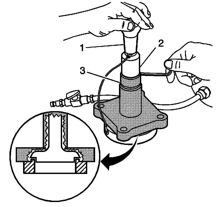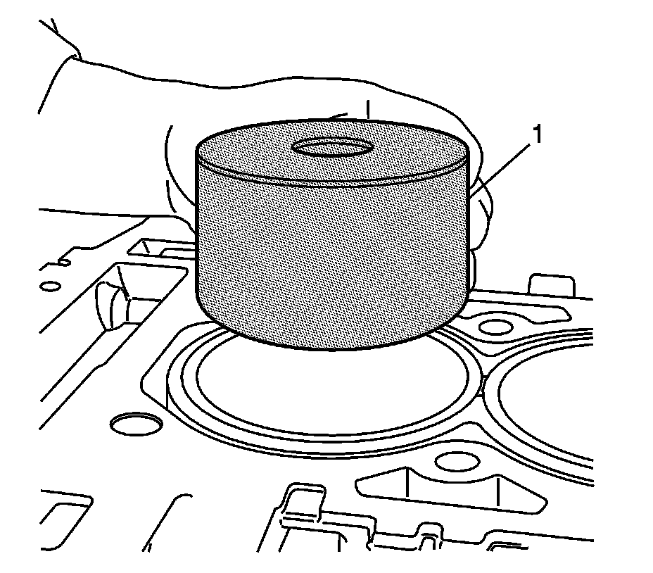 2. Place EN-45680-863 - metal shaving catch plug (1) into the cylinder bore sleeve to be trimmed. Position the top approximately 3.0 mm (0.12 in) below the top surface of the cylinder bore sleeve.