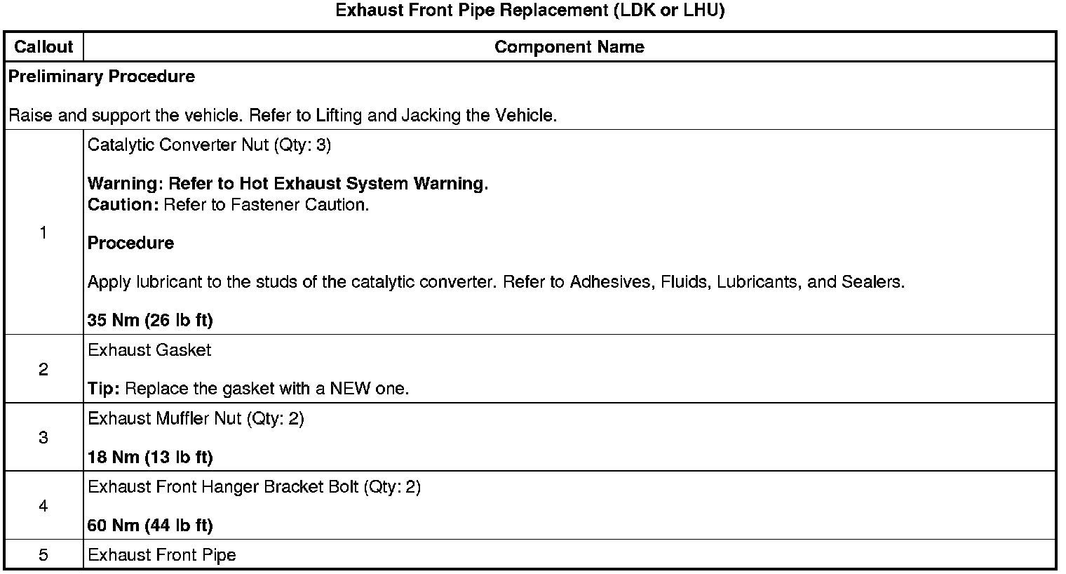 Exhaust Front Pipe Replacement (LDK or LHU)
