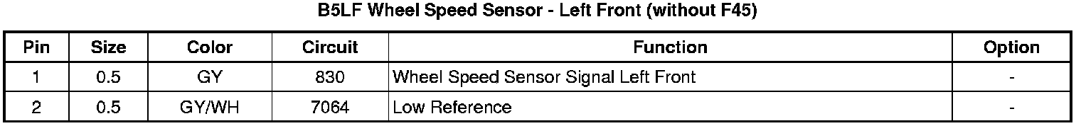 Wheel Speed Sensor - Left Front (without F45)