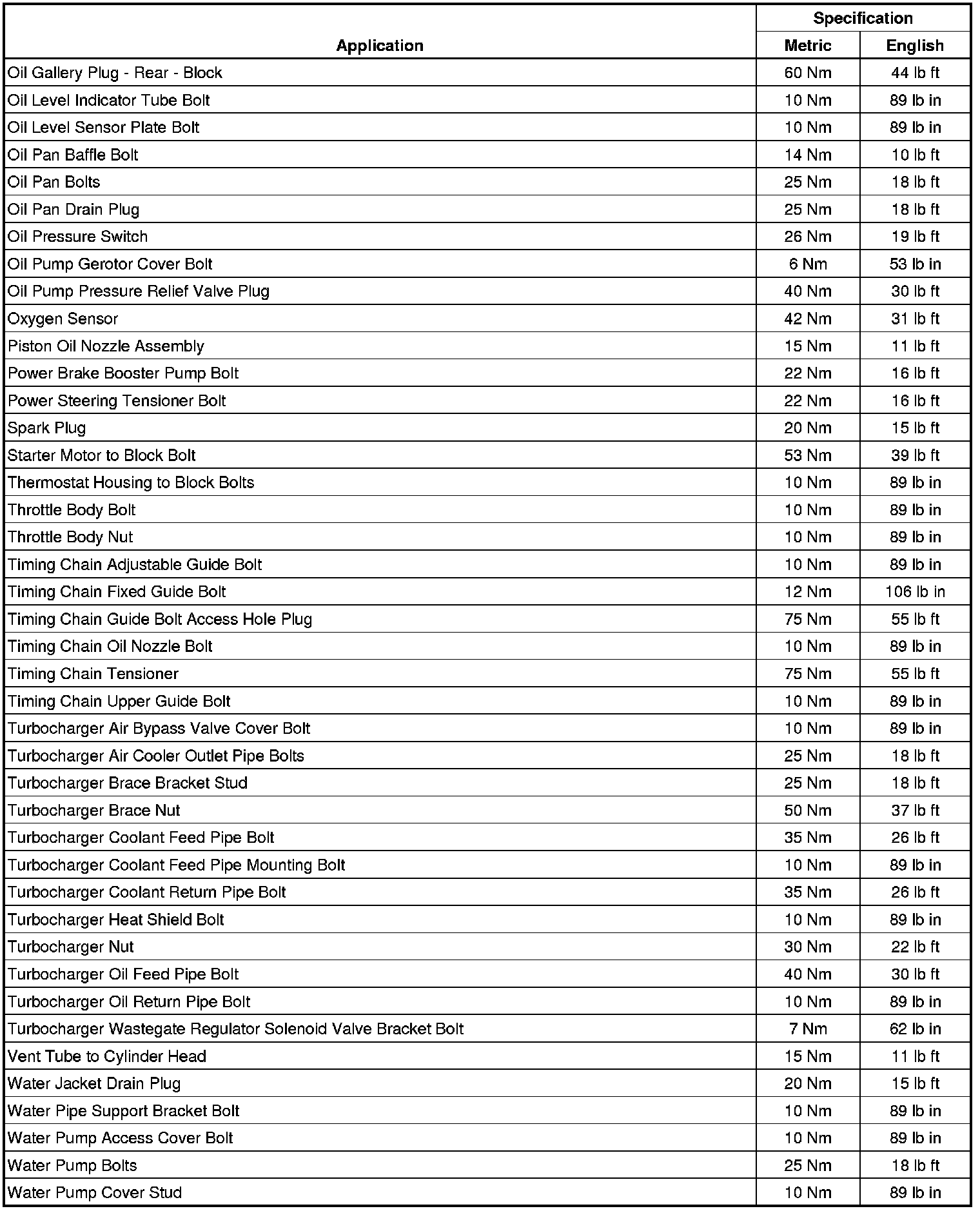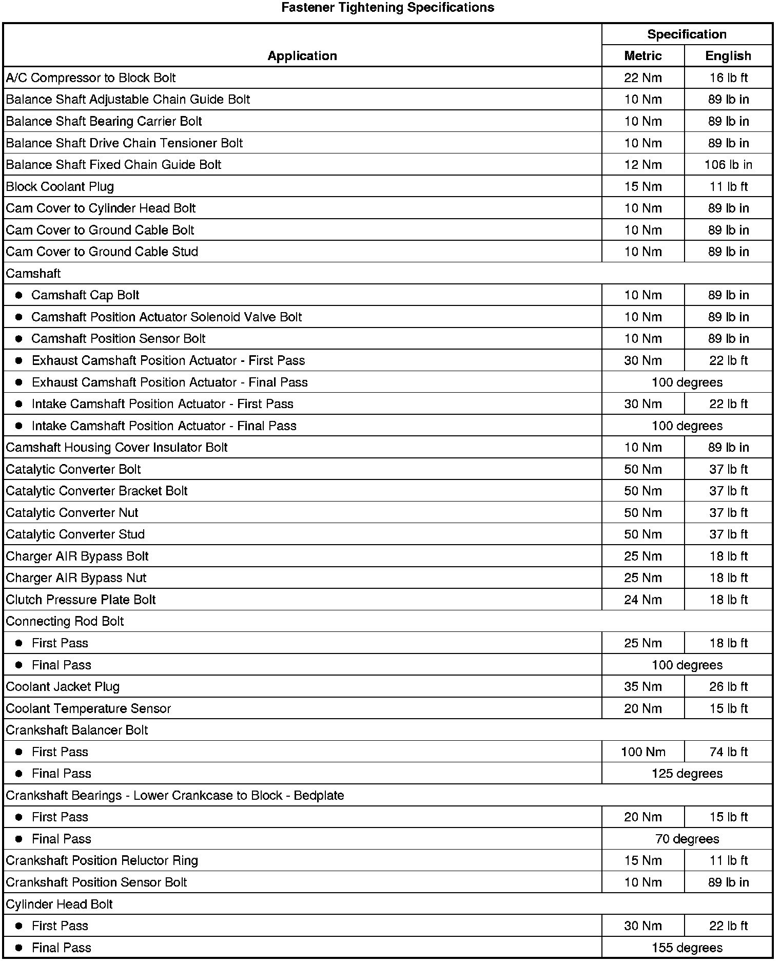 Fastener Tightening Specifications