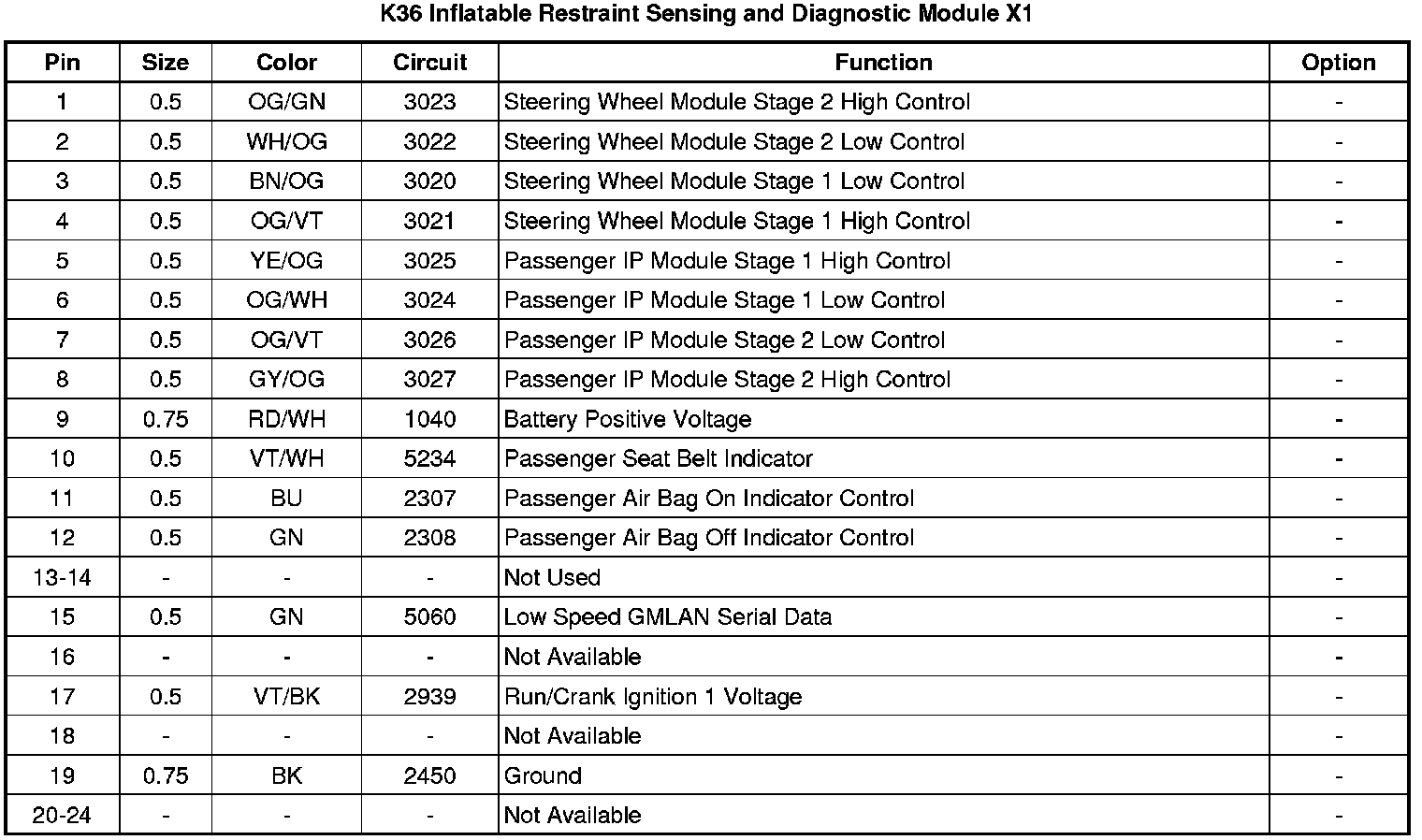 K36 Inflatable Restraint Sensing and Diagnostic Module X1