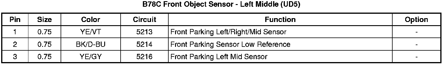 B78C Front Object Sensor - Left Middle (UD5)