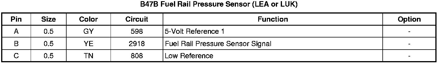 B47B Fuel Rail Pressure Sensor (LEA or LUK)