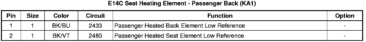 E14C Seat Heating Element - Passenger Back (KA1)