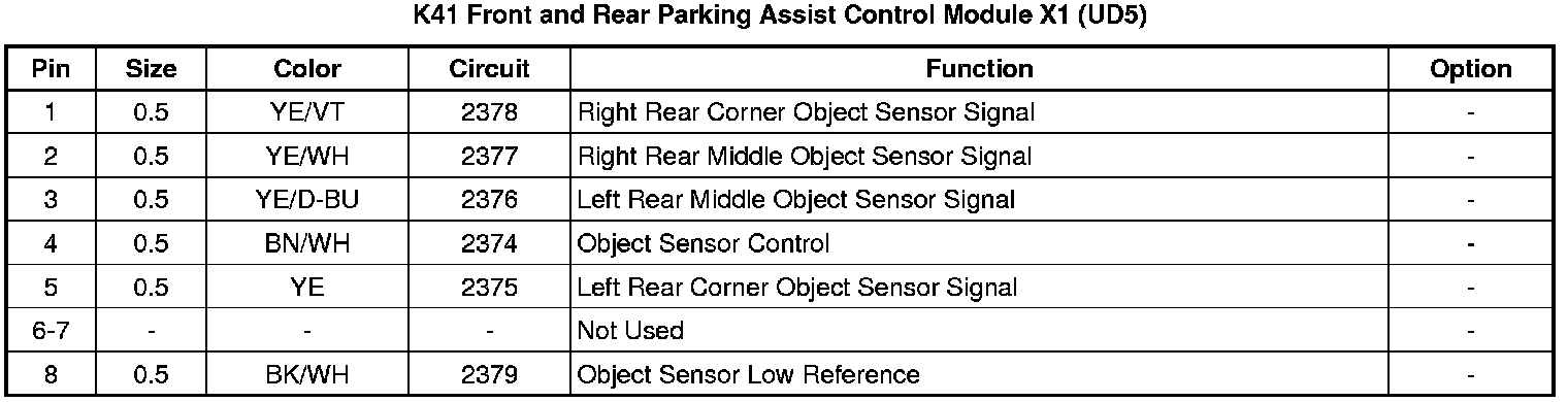 Front and Rear Parking Assist Control Module X1 (UD5)