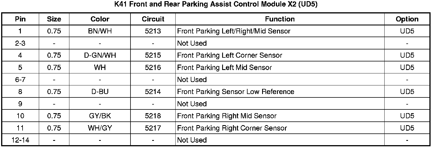 Front and Rear Parking Assist Control Module X2 (UD5)