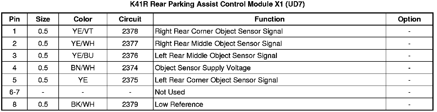 Rear Parking Assist Control Module X1 (UD7)