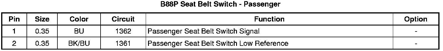 B88P Seat Belt Switch - Passenger