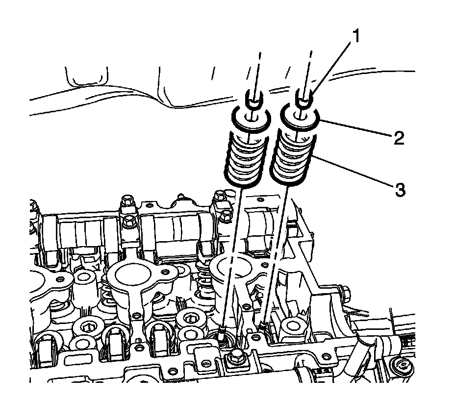 2. Install the valve spring (3) and retainer (2).