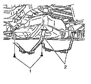 12. Remove fuel tank strap fastener (1) and straps (2).