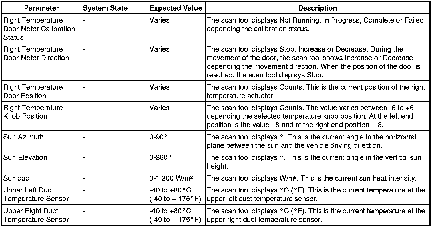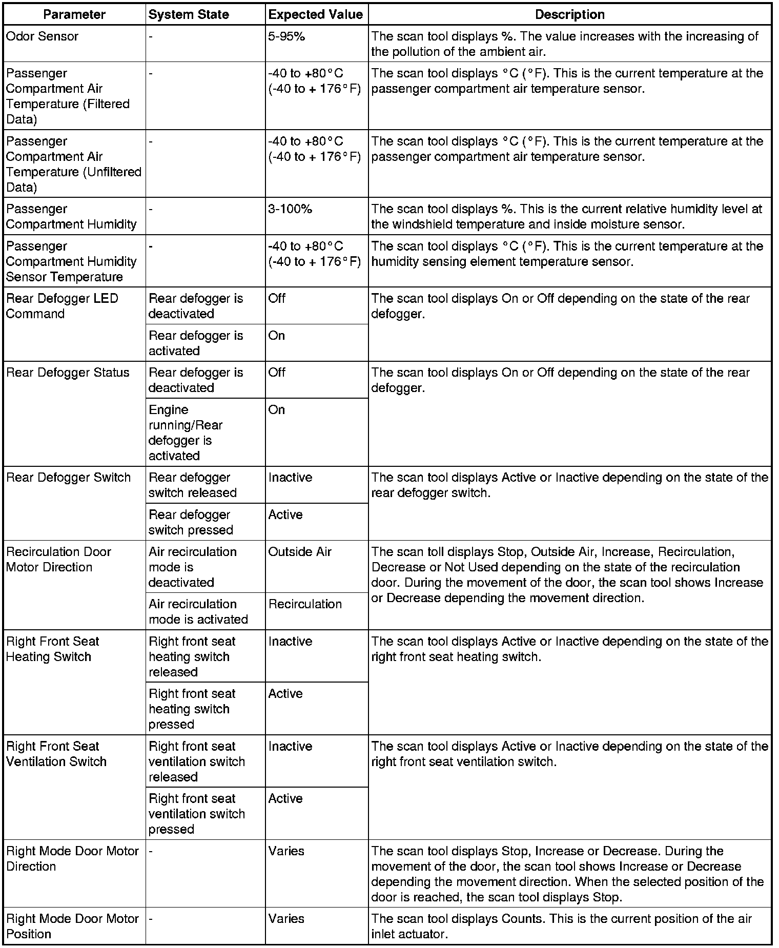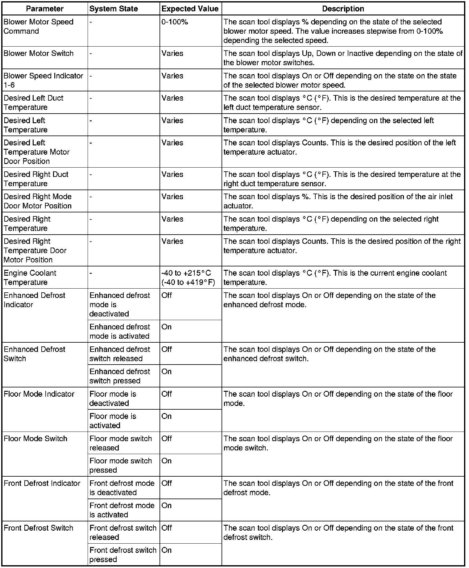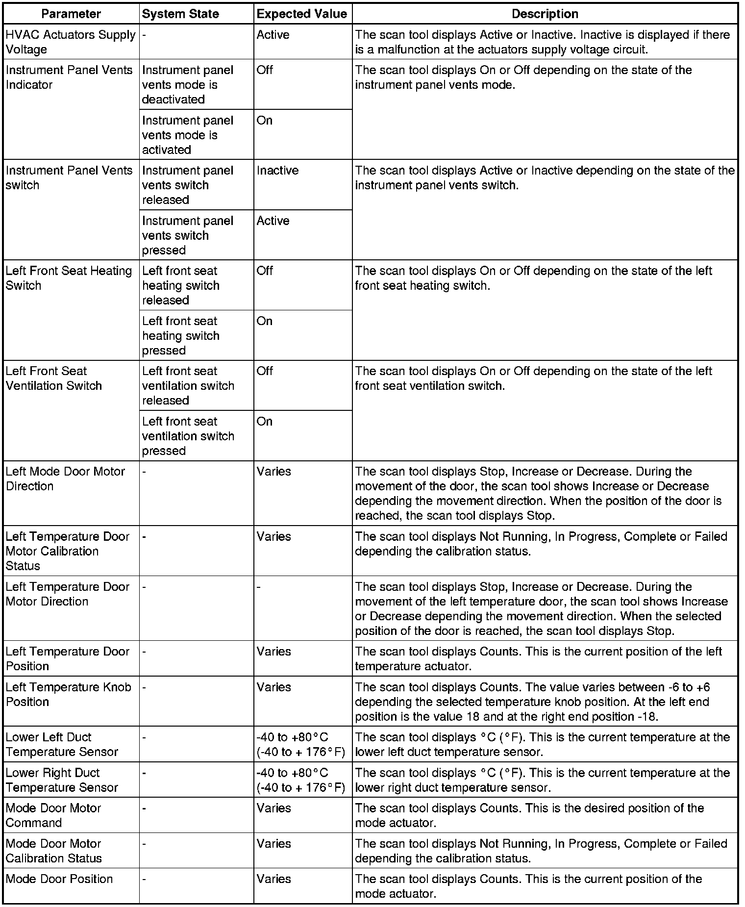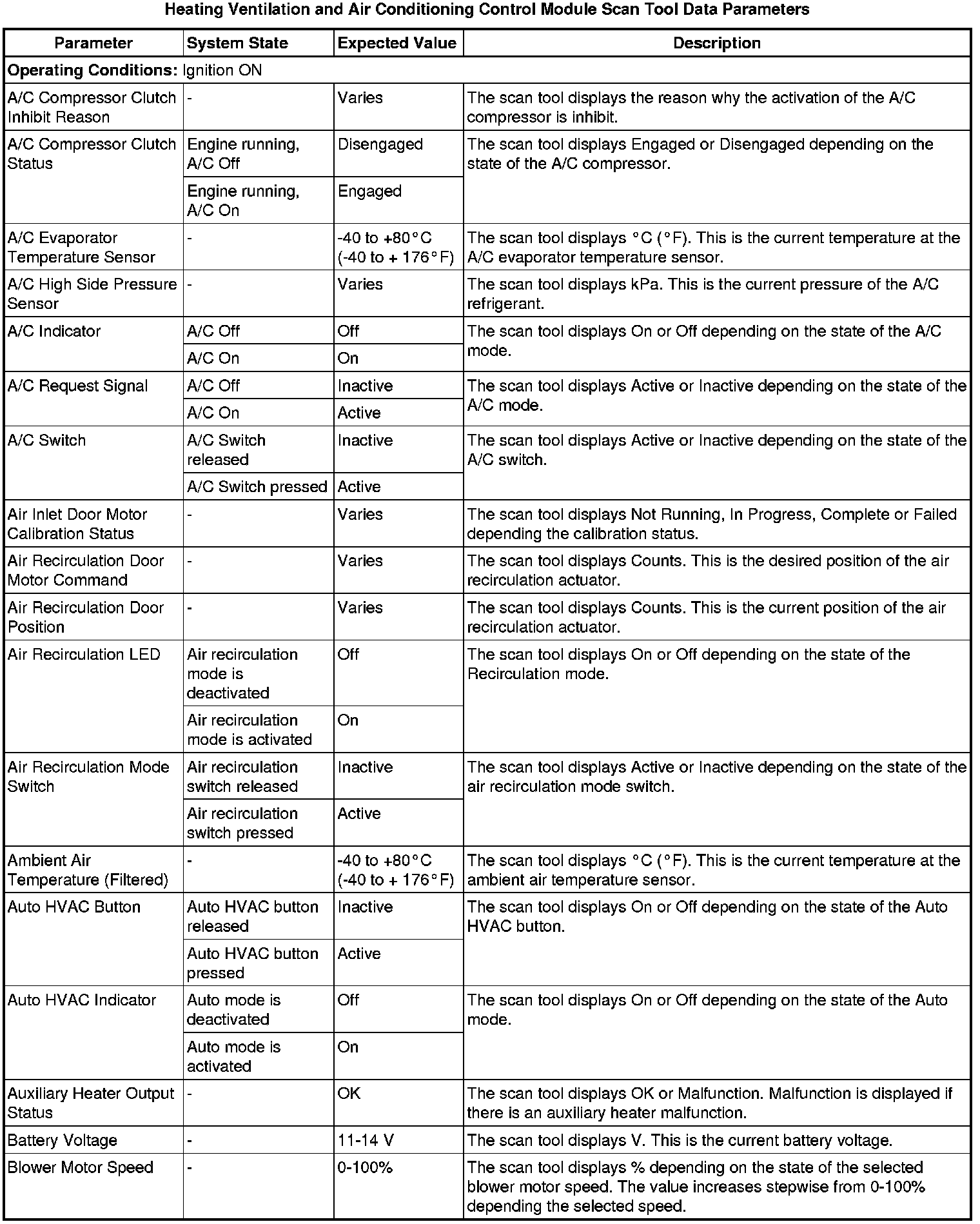 Heating, Ventilation and Air Conditioning Control Module Scan Tool Information