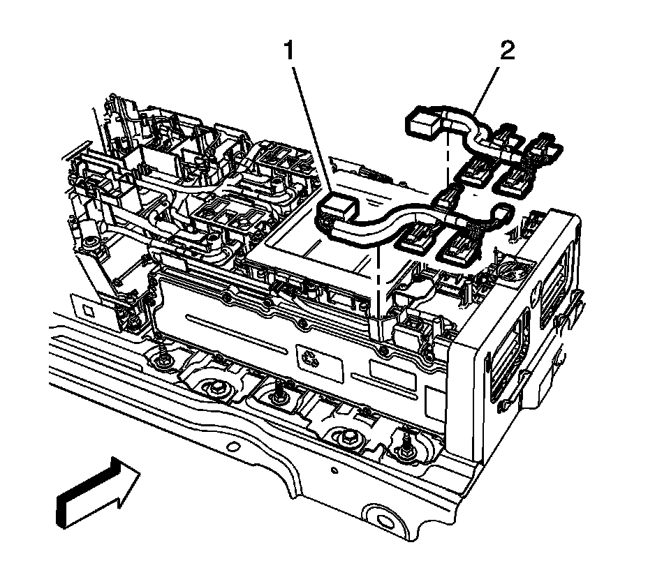 3. Remove the battery energy control module right side harness (1) and the left side harness (2).