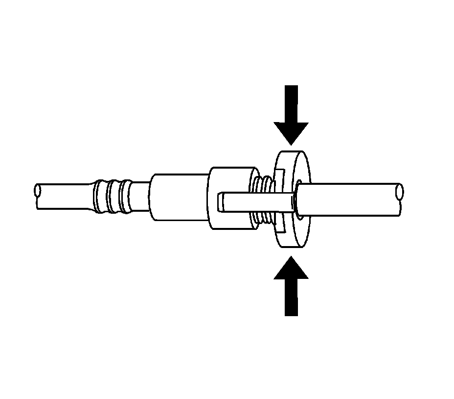 5. This step applies to Squeeze to Release style connectors ONLY. Push in the male side slightly in order to slide the retainer away from the retainers, squeeze where indicated by arrows on both sides of the plastic ring surrounding the quick-connect fitting.