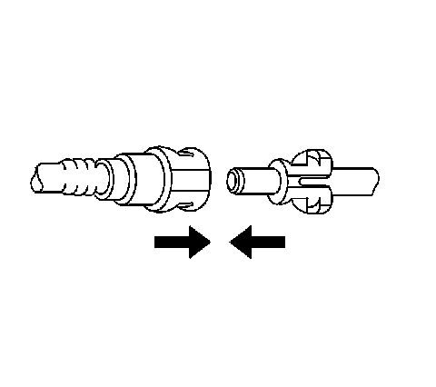 2. Push both sides of the quick-connect fitting together in order to cause the retaining feature to snap into place.