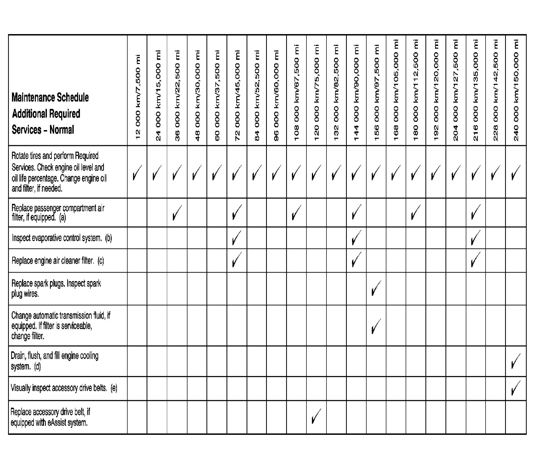 Footnotes - Maintenance Schedule Additional Required Services - Normal
