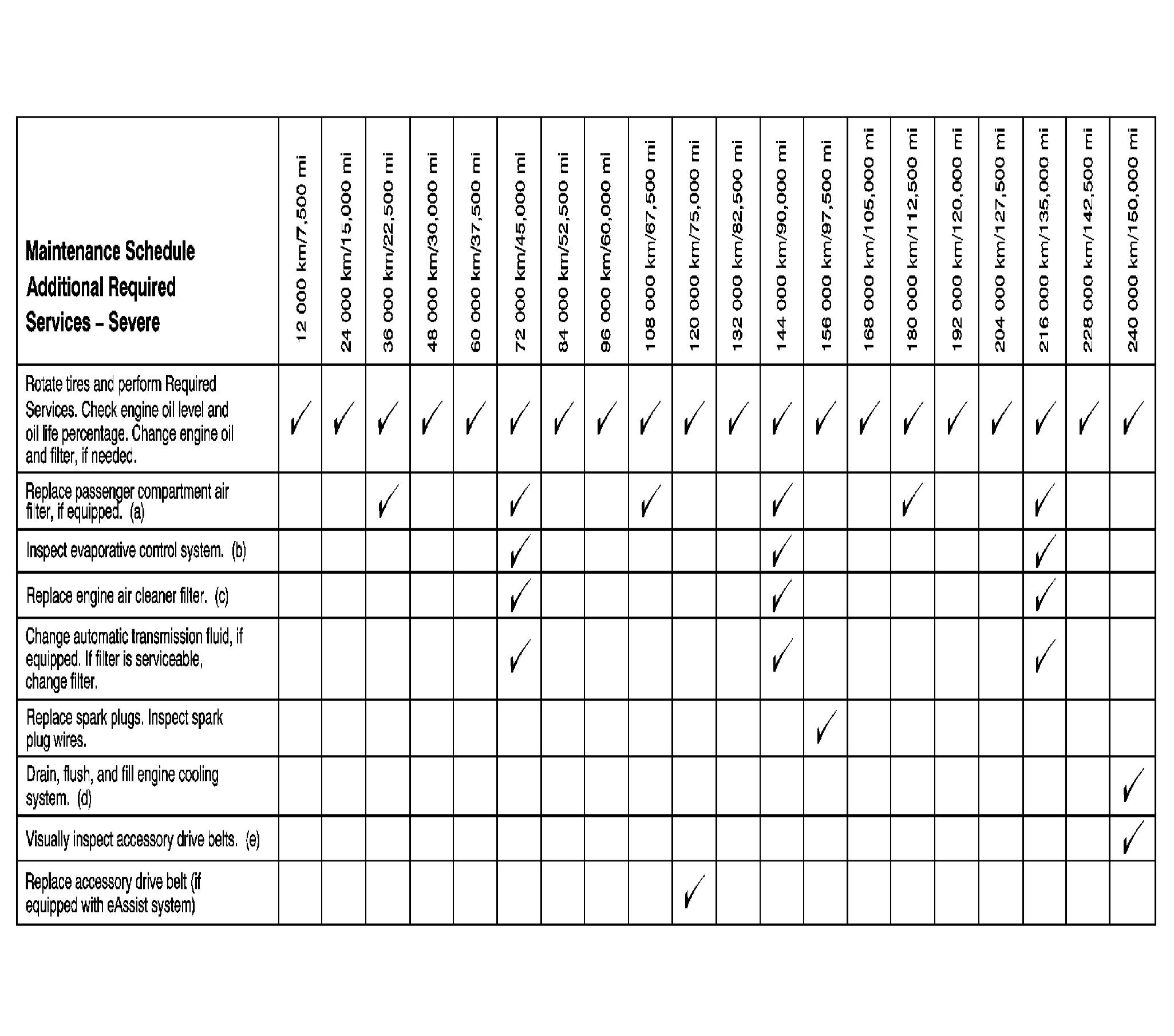 Footnotes - Maintenance Schedule Additional Required Services - Severe