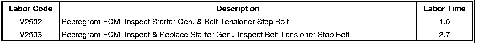 The Starter Generator Phase Lead to Terminal Weld Inspection in this bulletin has been revised to include instructions to capture all DTC information using a scan tool prior to disconnecting high voltage. Diagnostic information will be lost when the power is disconnected. The Belt Tensioner Stop Bolt inspection has also been revised. Please discard all copies of bulletin 11295A, issued November 2011.