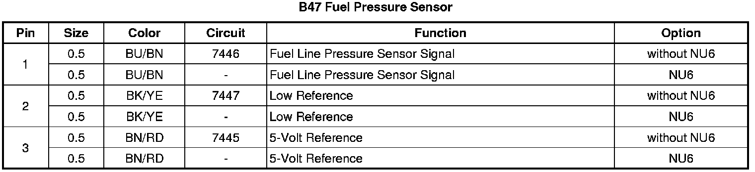Fuel Pressure Sensor: Diagrams