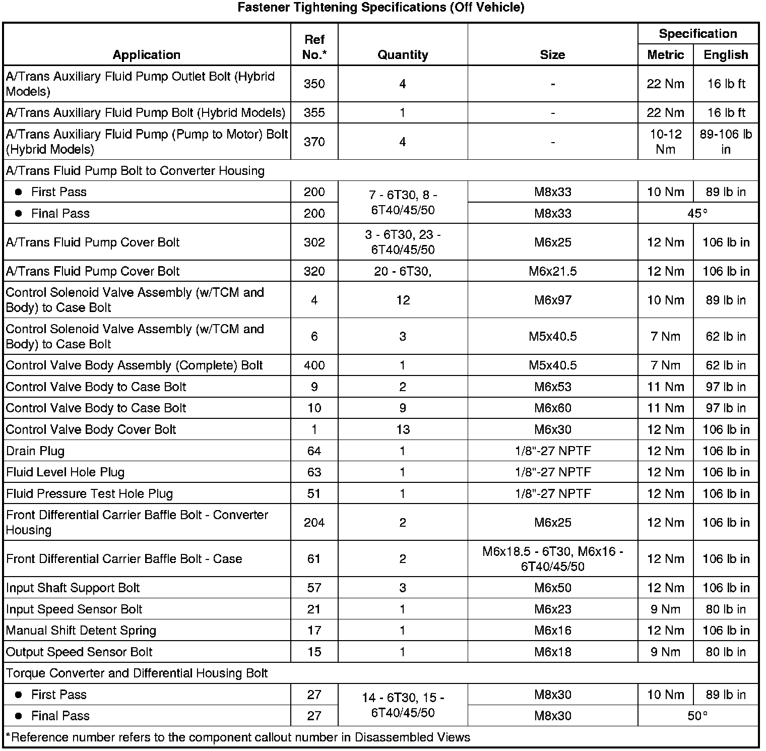 Fastener Tightening Specifications (Off Vehicle)