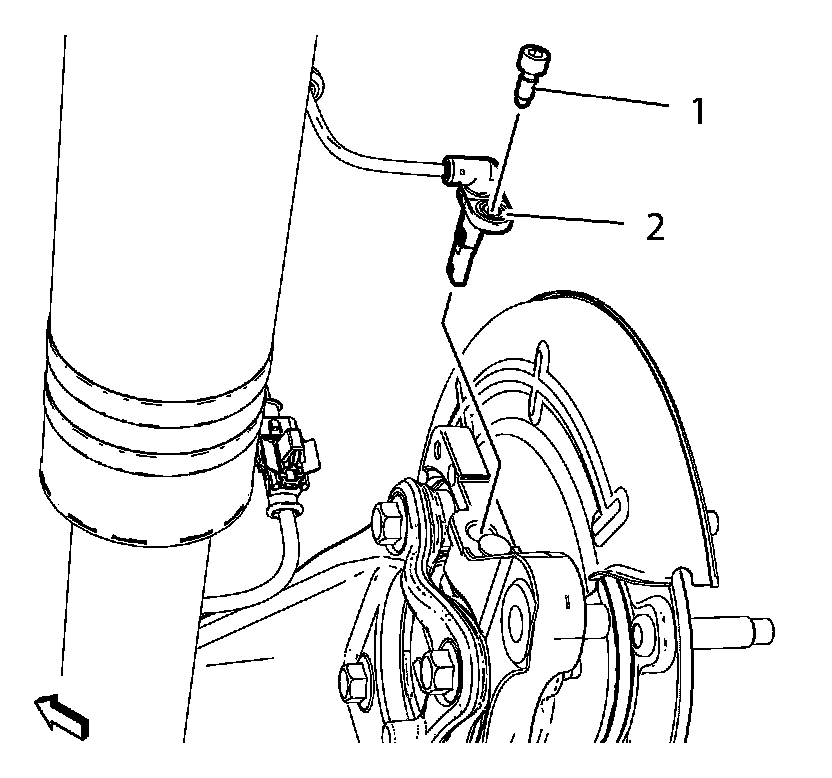 5. Install the wheel speed sensor bolt (1) and tighten to 6 Nm (54 lb in).