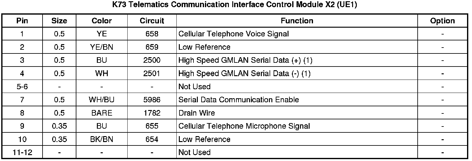 Telematics Communication Interface Control Module X2 (UE1)