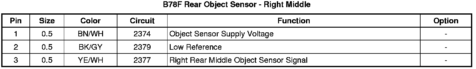 B78F Rear Object Sensor - Right Middle