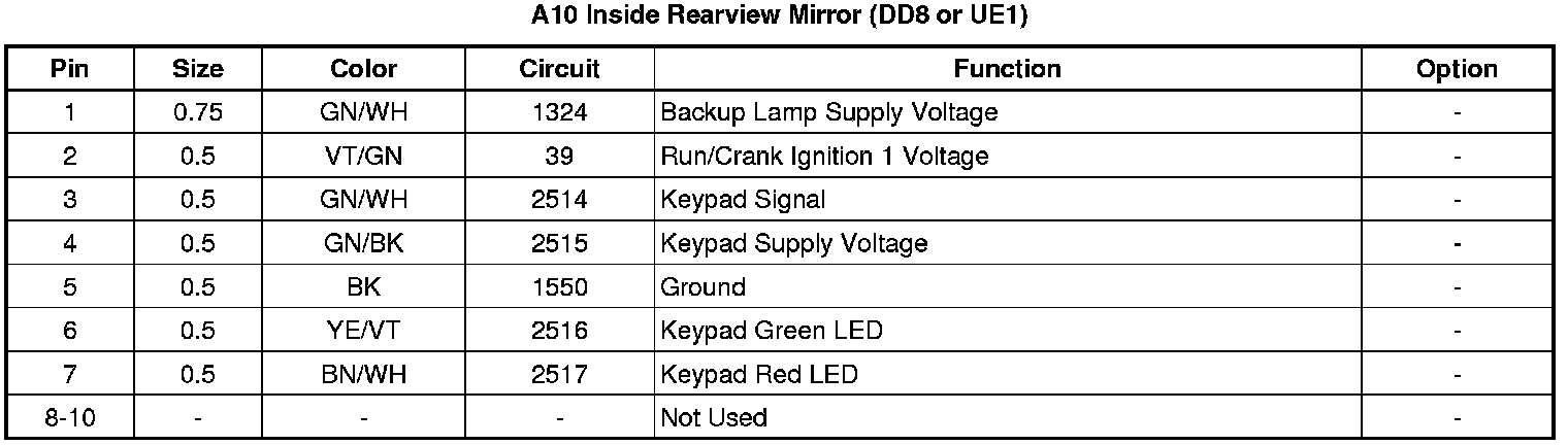 A10 Inside Rearview Mirror (DD8 or UE1)