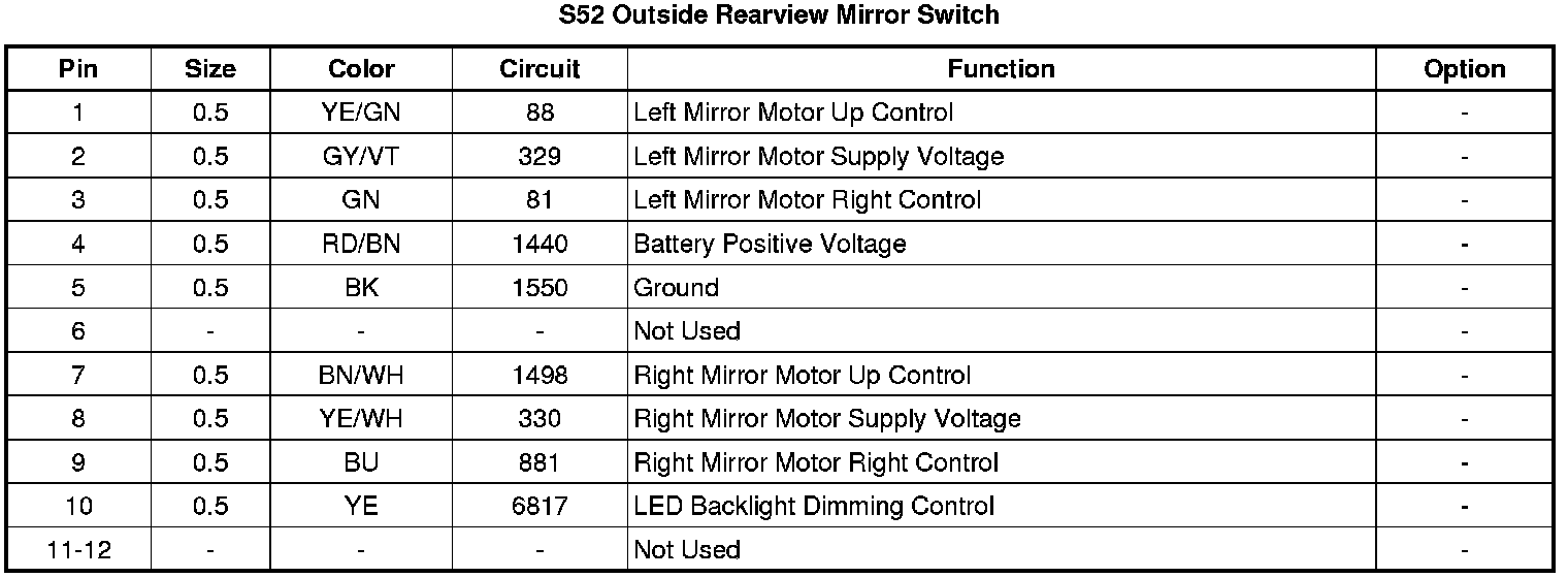 S52 Outside Rearview Mirror Switch
