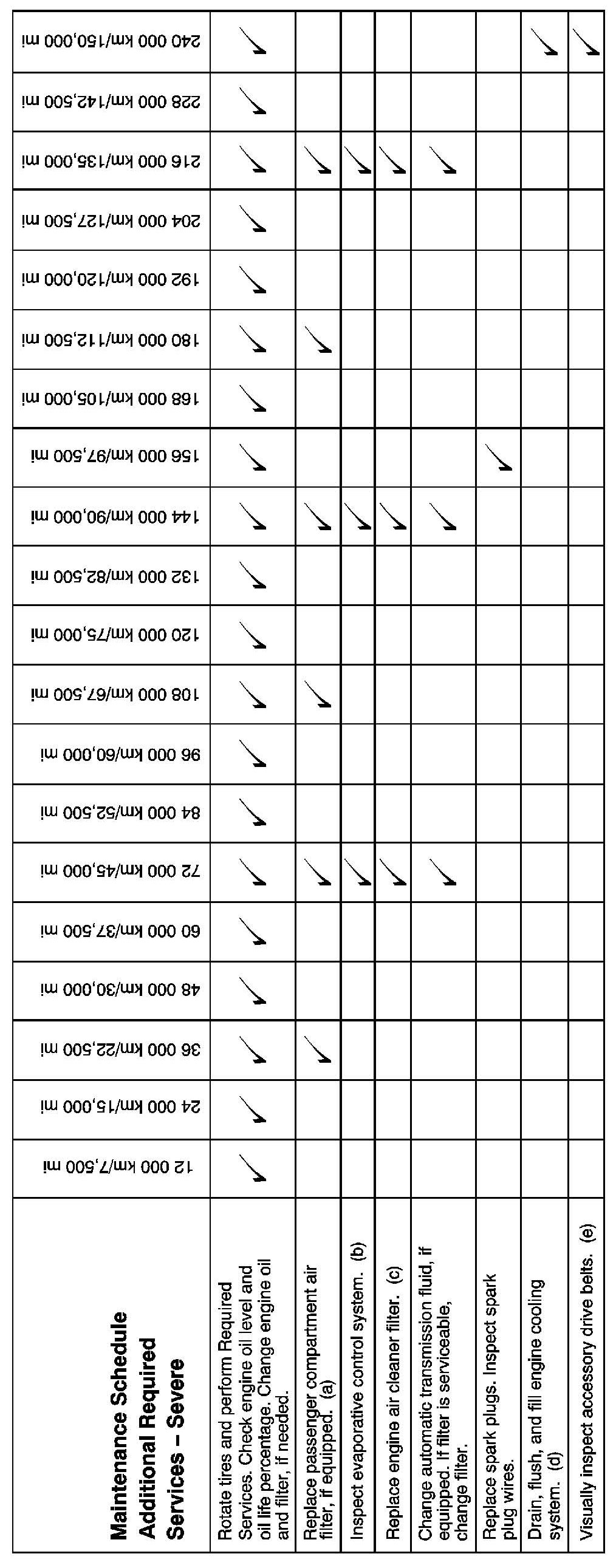 Footnotes - Maintenance Schedule Additional Required Services - Severe